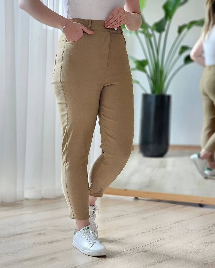 شلوار مام فیت قد 100 کتان کشی کره ای جیبدار بیرون پوش کد 878 shalvar katan kesh korei jibdar biron posh kod 878