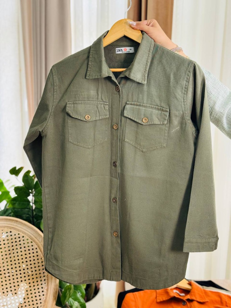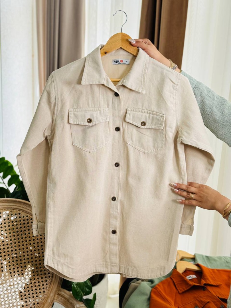 شومیز مانتویی بیرون پوش جین رنگی رنگی کاغذی بدون چروکی کد 2001 Shomiz