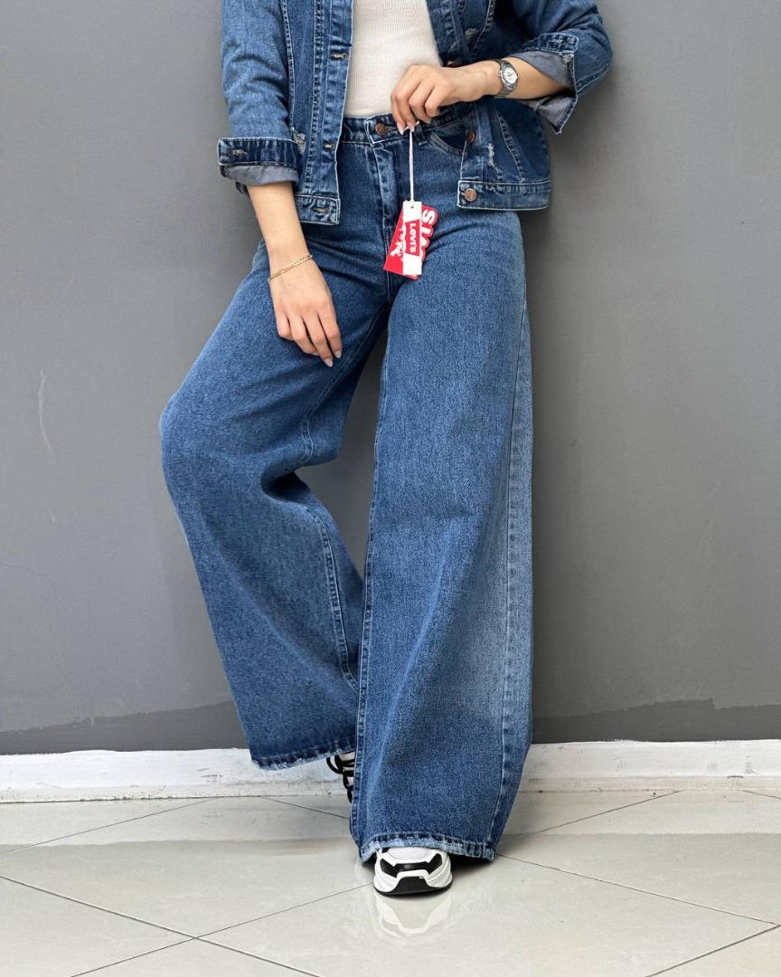 شلوار جین اصلی پلاس بگ راسته گشاد قد 115 کد 2067