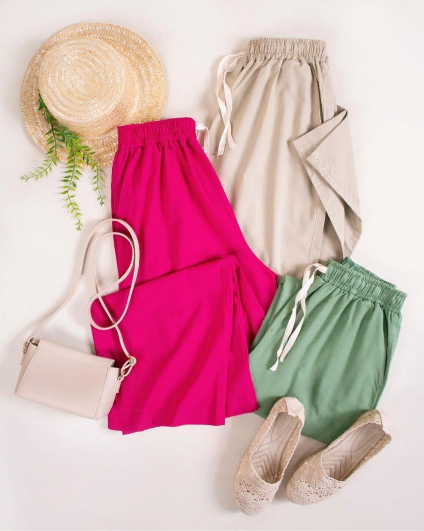 شلوار نیم بگ گشاد راسته لینن ترک جیبدار کد 2086 Pants