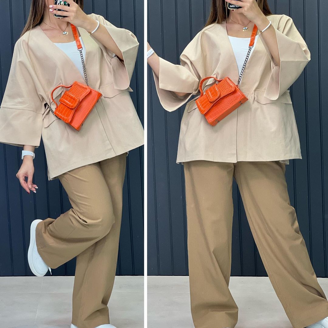 نقد و بررسی اجمالی شلوار نیم بگ گشاد راسته لینن ترک جیبدار کد 2086