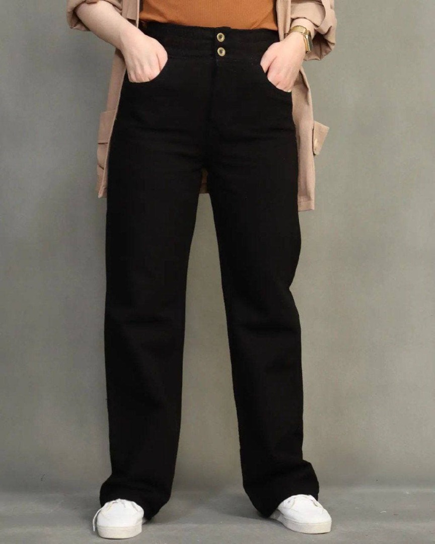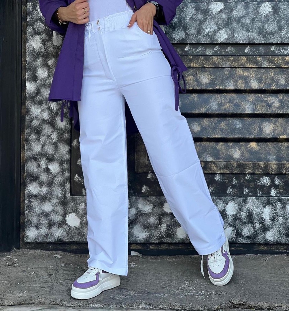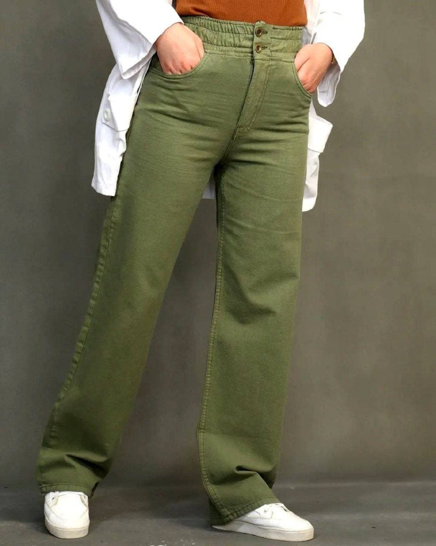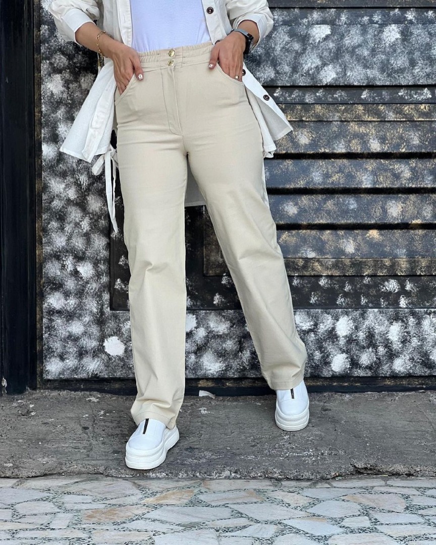شلوار نیم بگ راسته کتان کشی کره ای جیبدار بیرون پوش با قواره عالی کد 2089