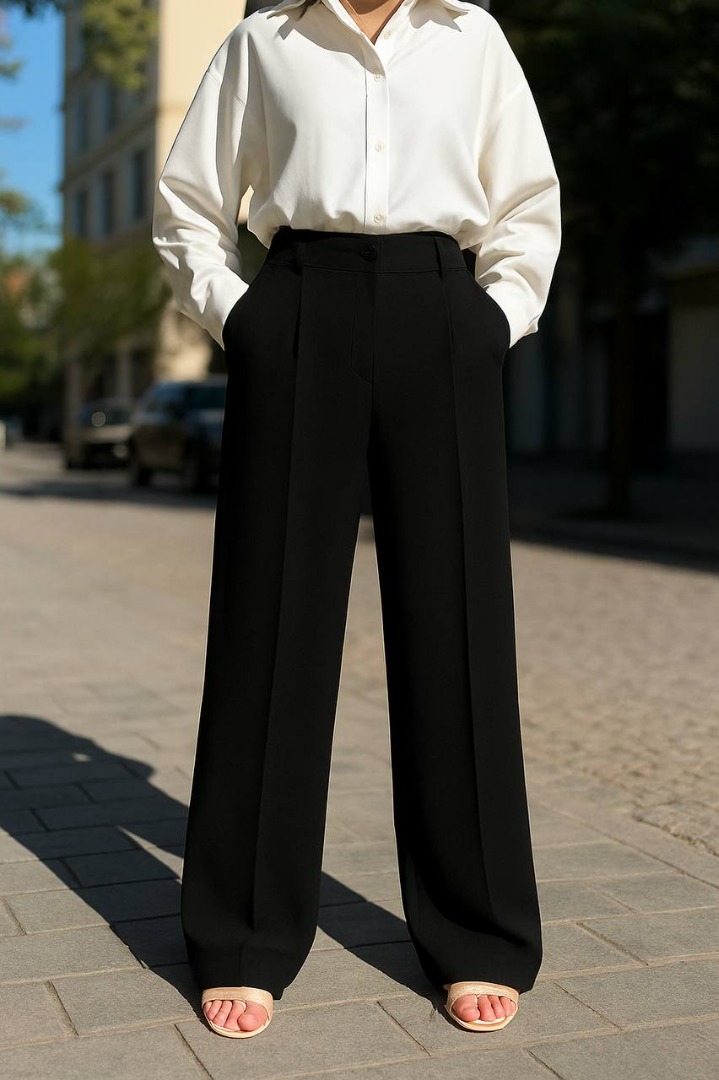 شلوار نیم بگ سوپر کرپ برند زارا بیرون پوش و مجلسی کد 2091 Pants