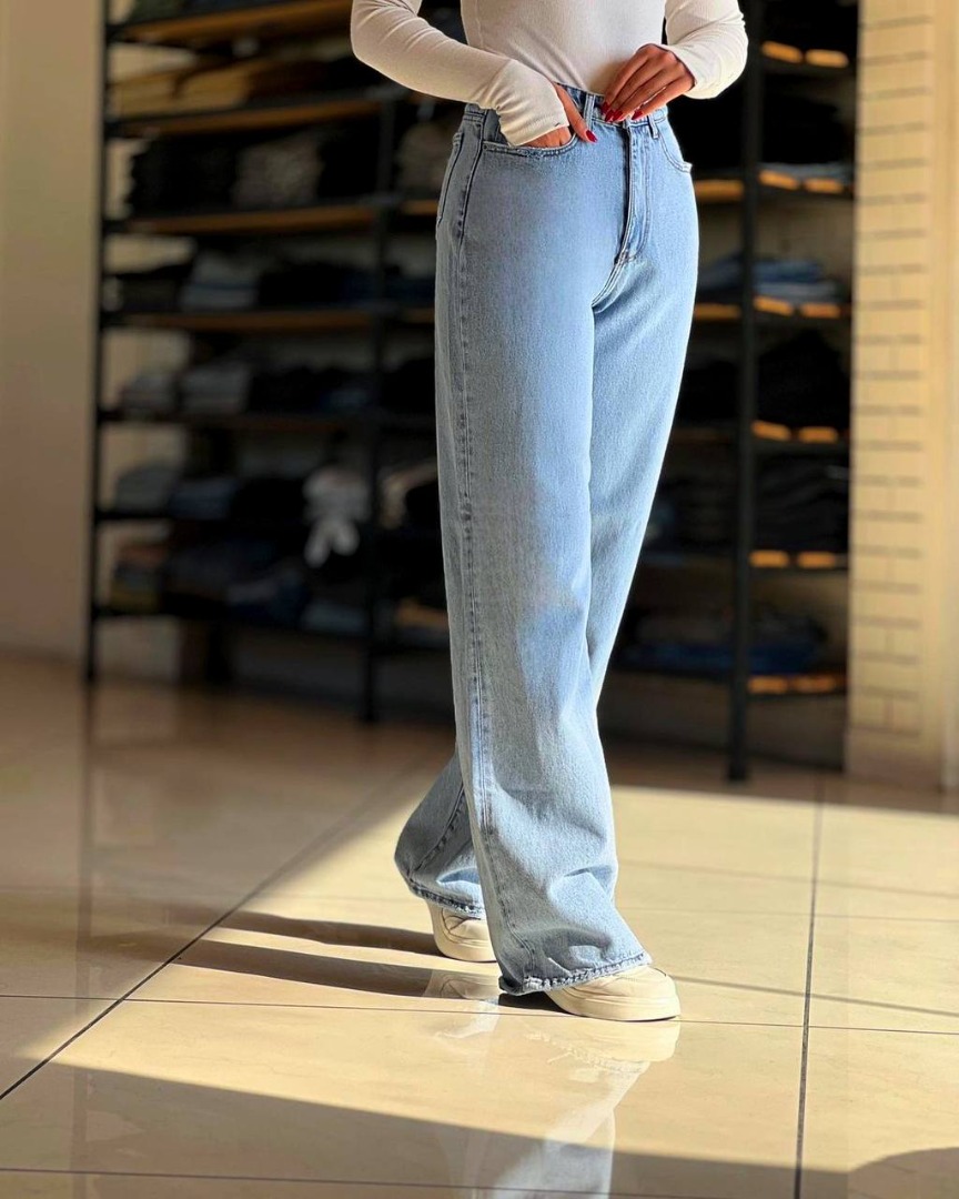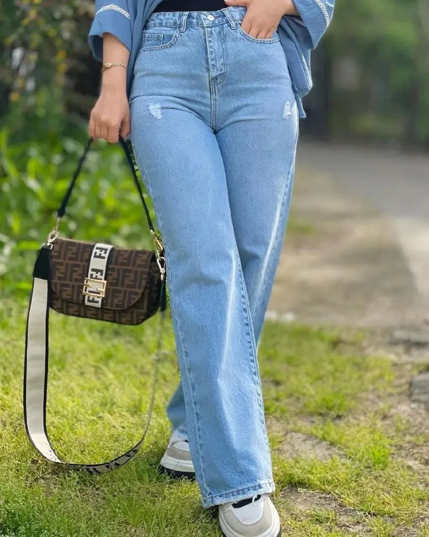 شلوار جین اصلی نیم بگ گشاد راسته کد 1191 shalvar jean asli nim bag goshad rasteh kod1191