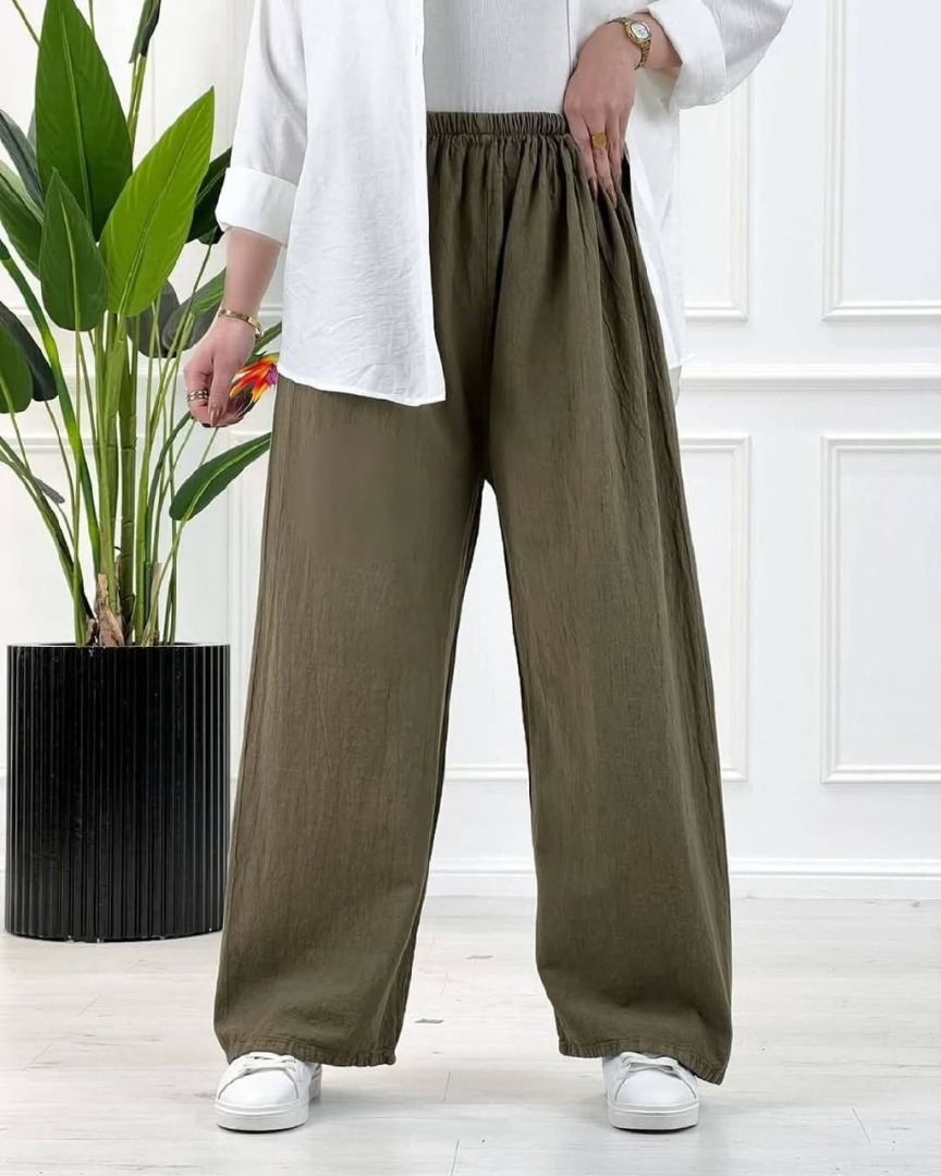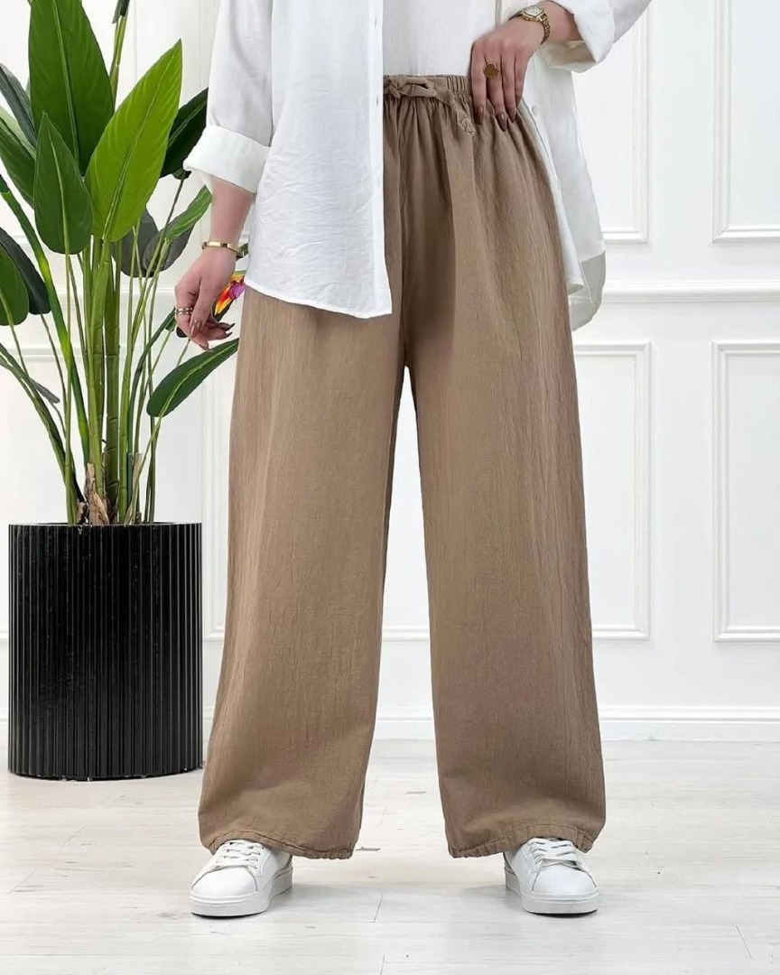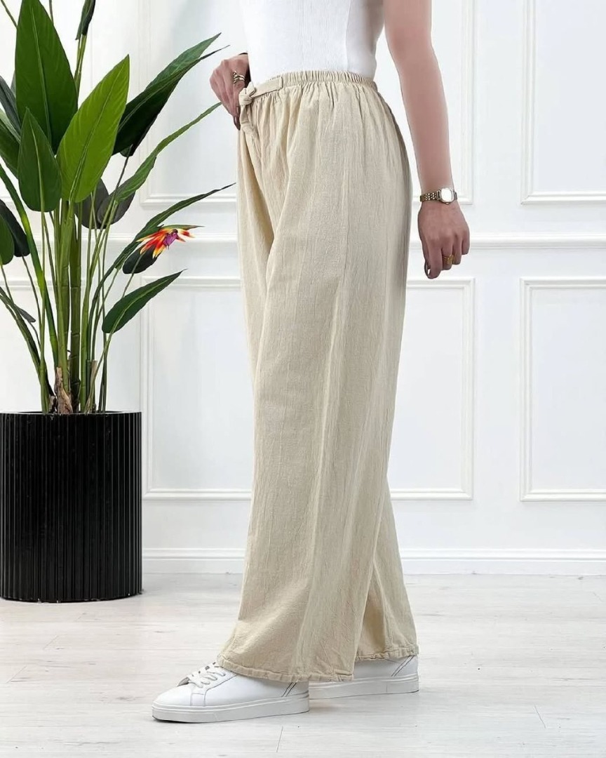 شلوار بگ گشاد راسته لینن بیرون پوش کد 647